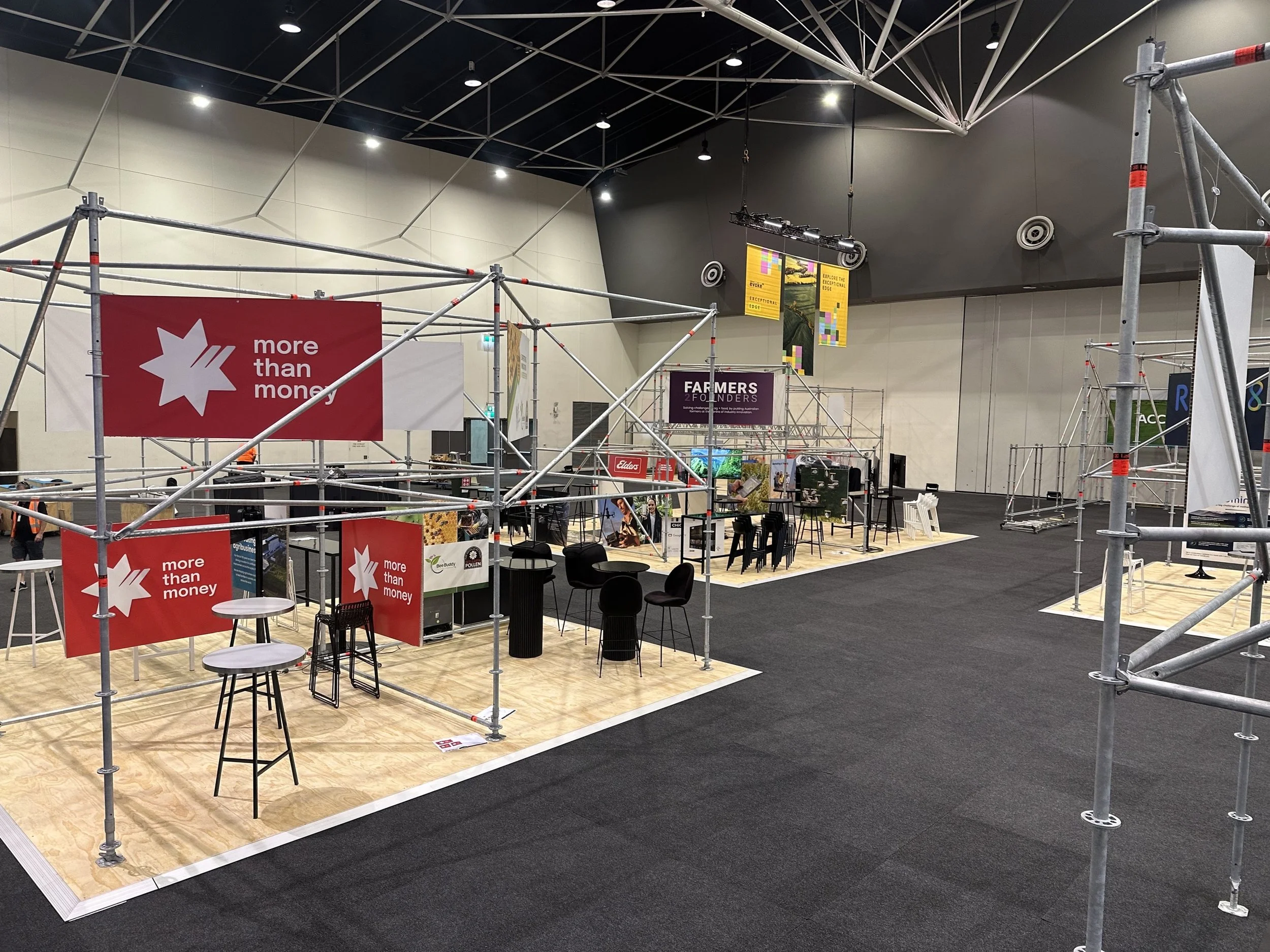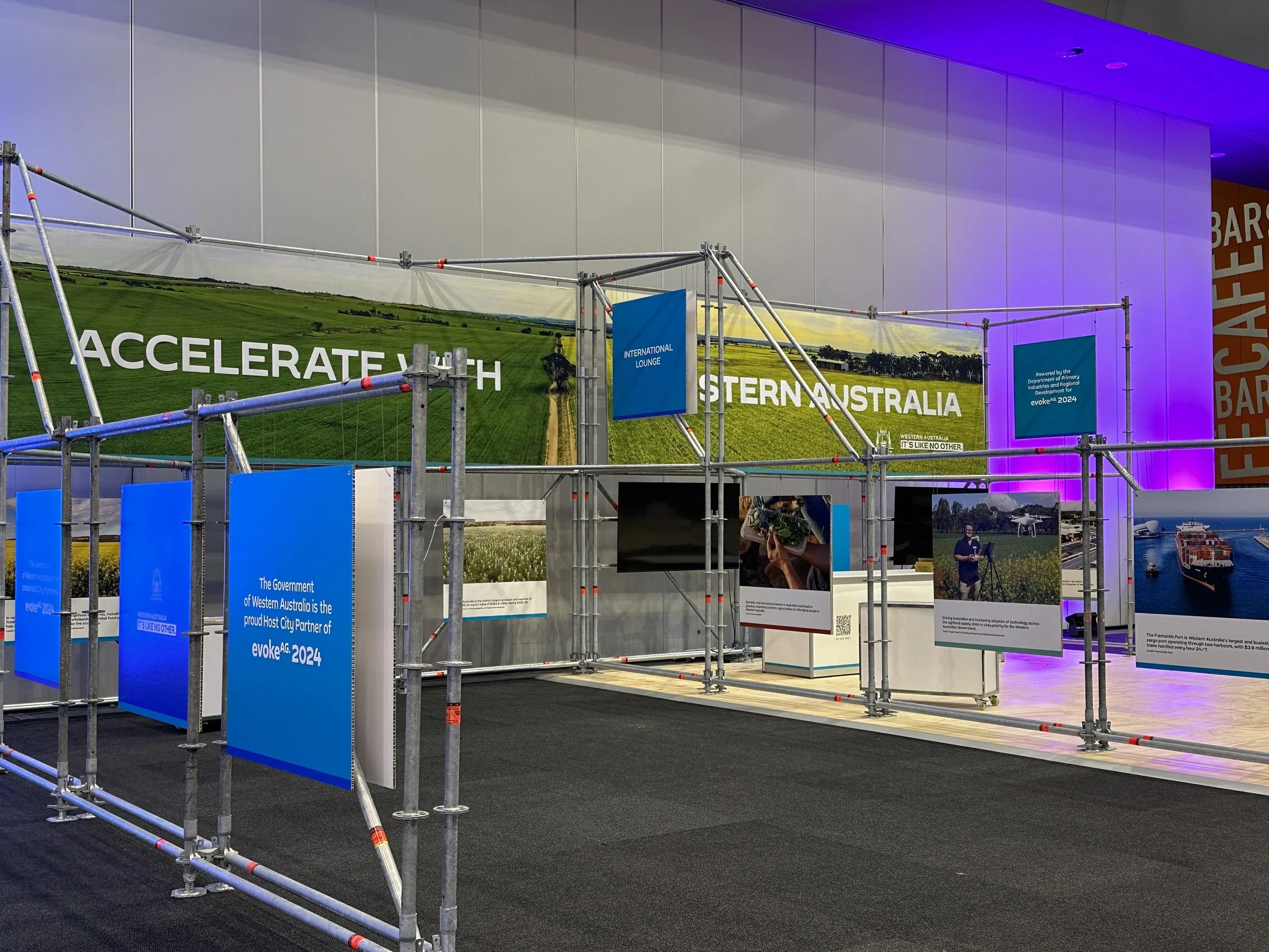 With nearly 50 individual vendors and in excess of 350 unique signage panels, I produced construction plans and signage provisions for each booth and vendor. I then travelled to Perth in a project management capacity, leading a 10-strong locally sourced crew to install signage, in addition to assisting the local scaffold crew with the scaffold builds.